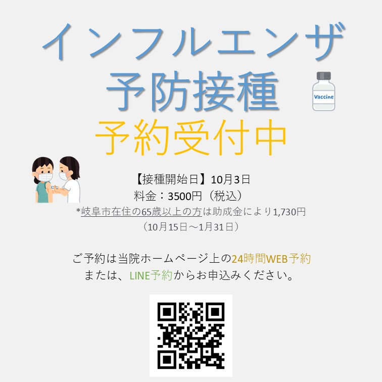 インフルエンザ予防接種のご案内③(一旦受付終了しましたが、随時入荷しておりますのでお問い合わせください)