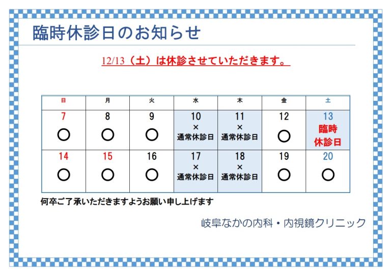 2025年12月13日(土)は臨時休診とさせていただきます。